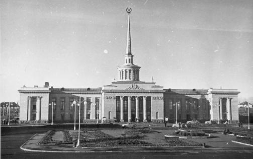 Начиная с 1775 года, когда возник ансамбль Круглой площади, главной улицей Петрозаводска надолго, почти до середины XX века, стала Нагорная линия, позднее Мариинская улица и проспект Карла Маркса. Однако город рос, в 1940 году получил статус столицы союзной республики, и в соответствии с масштабом его роста появлялись крупные учреждения, требующие организации новых центральных улиц и площадей. С точки зрения градостроительной, все улицы исторического ядра Петрозаводска, достаточно механистично уложенные в прямоугольную, ритмичную сетку, были совершенно равнозначны. Пожалуй, у бывшей Никольской (ныне Красной), переходящей у озера в Широкослободскую, было не меньше шансов стать новой главной улицей развивающегося города, чем у Бородинской, которую теперь все знают как проспект Ленина. Что делает городскую улицу главной? Только ли концентрация административных, культурно-просветительных и торговых учреждений? Конечно, это является необходимым, но не достаточным. Несмотря на довольно значительные сооружения, возведенные на проспекте Ленина в довоенное время, - учительский институт (1936), здание правительства республики (1937), гостиница "Северная" (1939), первая очередь университета (1940) - проспект оставался "вечно вторым" после бывшей Мариинки. А все потому, что проспект Ленина долгое время был улицей без начала и конца. Высокий художественный смысл каждой улицы в контексте города - связывать значительные городские пространства. У сравнительно маленькой Мариинки - она почти в четыре раза короче Бородинской - с самого начала ее существования были эти два значительных пространства: две площади - Соборная и Круглая. Проспект Ленина в свое время был просто назначен главной улицей Петрозаводска - об этом свидетельствует строительство на нем разнообразных учреждений. Но центральной улицей он стал, лишь получив композиционное завершение в виде привокзальной площади, созданной в середине 1950-х годов и получившей впоследствии имя Юрия Гагарина. С предложением перенести пассажирский железнодорожный вокзал выступил архитектор Дмитрий Масленников, возглавлявший в те годы Управление по делам архитектуры КФССР. В развитие послевоенного генерального плана Петрозаводска Д. С. Масленников детально проработал этот планировочный узел, располагавшийся на пересечении проспекта Ленина с улицей Красноармейской. Идея поставить новый вокзал на ось главной улицы города, приблизив его к центру пассажиропотоков, долгое время не находила понимания у железнодорожного ведомства. Ведь вокзал - не просто здание, а сложный узел технологических функций, и его перенос связан в первую очередь с переоборудованием и прокладкой новых железнодорожных путей, строительством дополнительных сооружений и тому подобным. Упорство Д. С. Масленникова и его целенаправленные действия на всех уровнях власти в защиту своей идеи увенчались строительством нового вокзала и созданием парадной площади, давшей достойное начало центральной улице Петрозаводска. По проекту ленинградского института "Дортранспроект" на привокзальной площади, кроме здания вокзала, предполагалось построить корпус управления Кировской магистрали (так раньше называлась Октябрьская железная дорога) и универмаг. Но что-то поменялось в планах, и площадь сформировалась жилыми домами. В 1955 году вокзал, 